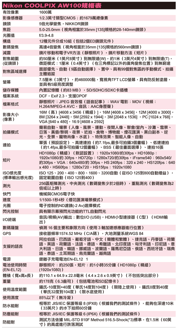 【精品試用】NIKON COOLPIX AW100
