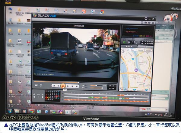 結語![]() ▲白天全螢幕播放時,錄影畫面的呈現。目前行車記錄器的技術可說是日新月異,許多史上最強的產品,往往隔不到一段時間,便被後來較好較新的產品所取代,目前試用的DR400G-HD在產品規格上、機身造型上、使用功能上,都可稱上一時之選,短期間內似乎不容易有更好的商品可以來取代。因此儘管不算便宜的9900元定價,仍受到相當多使用者的歡迎,且常出現供不應求的缺貨情形。不過,行車記錄器的機器本身,沒有絕對的好與壞;有否達到自己的需求且符合自己的預算,挑選一支最適合自己使用的行車記錄器,忠實的來記錄行車時的點點滴滴,那才是比較重要的事!