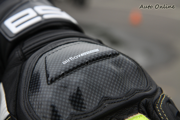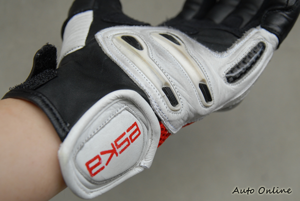 實際試用![]() ▲在手指關節處除了有硬質防護塊之外也有透氣的導風孔。這次由ESKA台灣總代理正水道實業所提供給我們測試的手套分別是夏季型手套BURN系列以及競賽用長版手套GP PRO。由於上下班必須騎乘近40公里以上的路程,因此一般時候以穿戴BURN款手套為主,而假日騎乘大型重機時則改穿戴長版的GP PRO。 ![]() ▲從小指側一路延伸到手掌內的地方ESKA置入許多軟墊,一來有防護的效果,再者進行逆操舵時也會比較輕鬆些。![]() ▲來自奧地利的ESKA表示只要有防摔塊的設計都要送歐盟進行相關認證,而waterproof則為一種布料的材質,常用於冬季款手套。![]() ▲高階的GP PRO款手套採用原廠airflow system技術,騎乘時將風導入可避免長時間騎乘時造成的手部悶熱。![]() ▲入門的BURN款手套在手掌以及手腕處皆置入橡膠軟墊,加強防護效果。