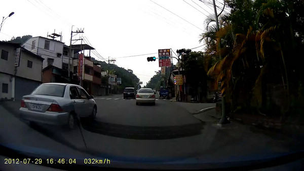 極佳的影片畫質![]() ▲優異的畫質是最值得推薦的理由,注意看左手邊的車輛,即使車牌接近邊緣,也沒有出現扭曲模糊的狀況。白天的情況下,DR380G-HD的畫質極佳,視角雖然沒有魚眼那麼廣,不過換來更清晰、變形量少的影像,絕對值得!多數情況車牌數字可清楚辨識,畫面也相當流暢,唯獨收音品質不理想,顏色也有點色偏,還好這不是很重要。在面對太陽逆光的情況下,畫面會有暫時偏暗的現象,幾秒後才會回復正常,不過這種情形多半發生在下午五、六點的黃昏陽光斜射時刻,日正當中的大白天反而一切正常,解決的方法前面已經提過,就是朝低角度拍。