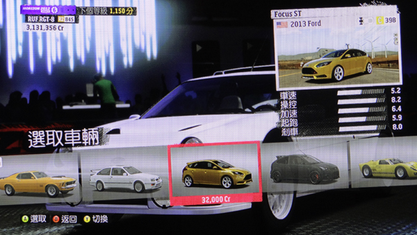▲FORD車廠當然是一大主力,遊戲也收錄了最新的Focus ST!可惜和其他Hot Hatch一樣,轉向不足現象設定得太嚴重,要賺錢千萬別選這台。