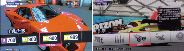 ▲改裝只能選擇等級和升級項目,無法個別微調懸吊軟硬或煞車力道,有點可惜。