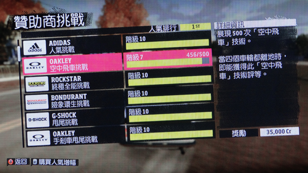 ▲「贊助商挑戰」其實就是讓玩家竭盡所能甩尾、刷卡、超速、破壞,舉凡一切想得到的危險駕駛和公共危險罪全都有助積分,難怪遊戲要限制13歲以上才能購買。