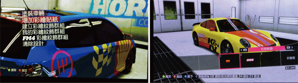 ▲客製化塗裝是賽車遊戲的重要元素,內建的花樣雖然不少,可惜授權商標的貼紙選擇很有限。