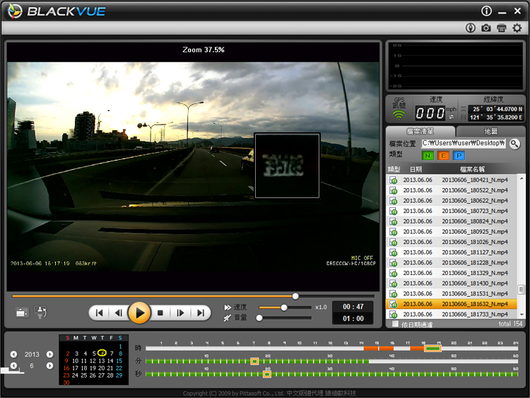 測試結果會說話![]() ▲BlackVue操作圖組DR500GW-HD搭配200萬像素的CMOS鏡頭,乍看之下好像像素不高,但是面對市售的行車紀錄器,它所能拍攝的解析度卻已達到1080pFullHD@30fps的程度,加上使用了H.264影音壓縮格式,不但讓畫面的清晰度大幅提升,同時也不會有跳格的問題。消費者購買行車紀錄器最看重的還是在各種光線下的清晰度,當然測時的時候一定不能錯過,以下就分別為大家呈現不同的光線下的成果。 ![]() ▲操控介面圖組![]() ▲即使在逆光的情況下也能拍到前車的車牌。![]() ▲在BLACKVUE畫面上點選左鍵,會出現放大鏡的功能,方便辨識車牌號碼。