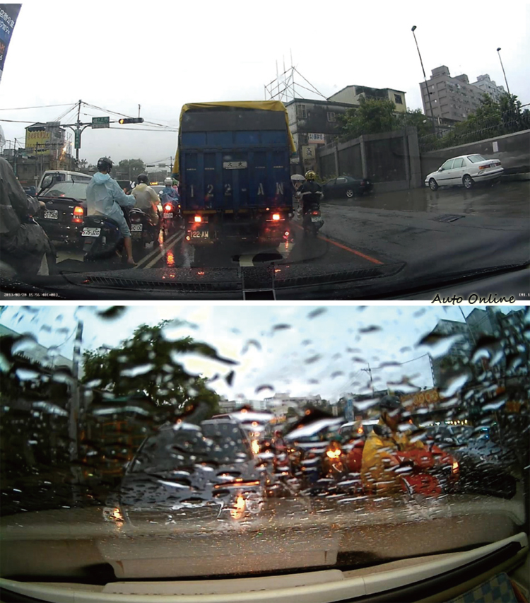 ▲雨中拍到的畫面,後窗玻璃因為雨滴的關係,畫面可以看到的場景很有限,但前鏡頭相當清楚。