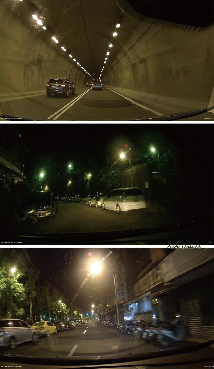 ▲前鏡頭在隧道中、偏暗巷弄、路燈照明的場景所得行車畫面,表現都屬水準之上。(隔熱紙:前3M M70、後FSK F30)