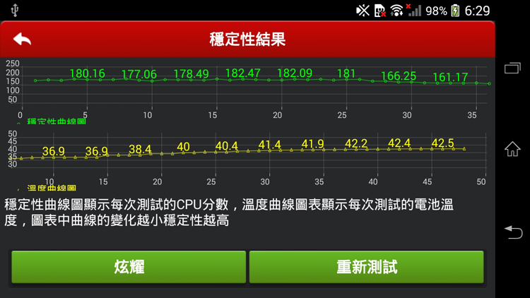 效能實測![]() 如果拿曾經測試過的XPERIA Z來相比,Z1 Compact在效能上真的提升了不少,除了搭載2.2GHz的四核處理器與2G記憶體,系統也改用了Android 4.3版本,透過安兔兔與Quadrant Standard進行效能測試,分別拿到了34754與21112的優異分數;繪圖與3D測試程式中,NenaMark2測得Z1 Compact有58.8fps的表現,而BaseMark ES 2.0測試也拿到了58.47的成績。除此之外,在測試行動瀏覽效能的Vellamo測試項目中,Z1 Compact也分別在HTML 5與METAL項目中獲得2990與1202的高分,數據表現相當亮眼,經過實際的操作後,雖然流暢表現優異,但是長時間使用後還是偶爾會出現卡卡的狀況,所以建議隨時把多餘的背景程式關掉,提升使用效能。 ![]() ▲雖然Z1 Compact的穩定度測試數據還算不錯,但是長時間操作下來還是會有卡卡的感覺。