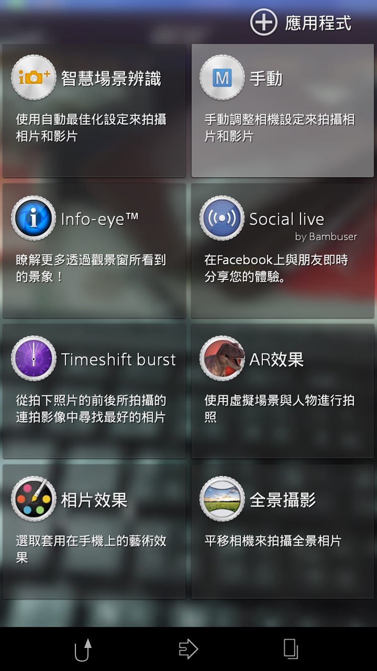 拍照防水好功夫![]() ▲主相機採用1/2.3 吋 2070 萬畫素影像感測元件與F2.0大光圈的G鏡頭,前置相機則有200萬素。拍照功能一直以來都是SONY手機的亮點,XPERIA Z1 Compact當然也不例外,主相機採用1/2.3 吋 2070 萬畫素影像感測元件與F2.0大光圈的G鏡頭,搭配BIONZ影像處理引擎與內建的多元化拍照功能,想要輕鬆拍照理應不是難事。因此,這次的測試當中,當然就要來檢視一下它的拍照能力。 ![]() ▲提升拍照便利性的快門按鈕,在Z1 Compact也看的到。![]() ▲在BIONZ影像處理引擎的加持下,用Z1 Compact拍出漂亮照片不是難事。![]() ▲智慧型場景辨識雖然很方便,但還是需要一點時間熟悉它的辨識方式。![]() ▲XPERIA Z1 Compact具有多樣化的拍照模式與功能。![]() ▲手動模式可自行選擇需要的場景,若不使用場景除了可使用最高2070像素拍照外,白平衡、曝光與IOS均可自行調整。![]() ▲內建九種相片效果,即使不抓APP也能拍出特殊效果的照片。![]() ▲AR模式擁有七種場景,會自動為人或物進行適當的裝飾。