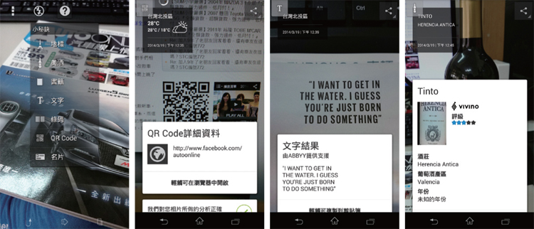 ![]() ▲在Timeshift burst模式中,每次的快門都會在2秒鐘內拍下61張照片,相當適合用來記錄瞬間的動作。最後一個就是Info-eye的模式,這是一個將拍照與搜尋結合的功能,除了可以透過拍照找尋到所見的景物或者酒類相關資訊以外,亦具備圖轉文以及QR code掃描器等能力,有別於前面幾項功能需要花一點時間上手,Info-eye相對的就很簡單方便,這點真的非常好用。 ![]() ▲Info-eye模式將拍照與搜尋功能結合,除了可以透過拍照找尋到所見的景物或者酒類相關資訊以外,亦具備圖轉文以及QR code掃描器等能力。![]() ▲XPERIA Z1 Compact具有IP55與IP58的防水防塵等級,可在1.5米的水深下防水30分鐘。![]() ▲Z1 Compact具有F2.0最大光圈值,在水中即使不補光也可以拍出寫實的照片。
