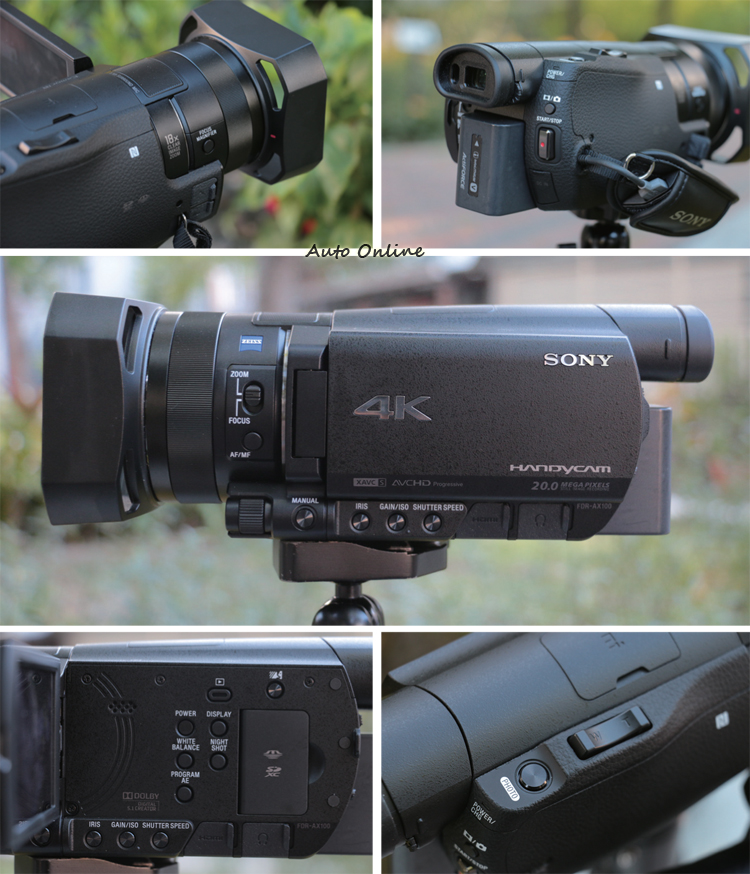 ![]() 先就外型來看,SONY FDR-AX100的機身尺碼為:寬81mm X高83.5mm X深196.5mm,重量則是915公克,如果拿掉4K的字樣,FDR-AX100真的與一般的手持式攝影機沒啥不同,而如果你有在關注SONY的產品訊息,你甚至會發現它有一款配備幾乎完全相同的雙生兄弟HDR-CX900。 ![]() ▲FDR-AX100除了有還算輕巧的機身設計外,操作方式也與其他SONY攝影機大同小異。![]() ▲FDR-AX100採用廣角蔡司鏡頭,搭配Exmor R™ CMOS大型感光元件,有效解析度達1420萬像素。![]() ▲音源除了具有Dolby 5.1聲道環繞音效錄音功能外,還新增「正在消除我的聲音」模式,讓收音效果更加清晰。
