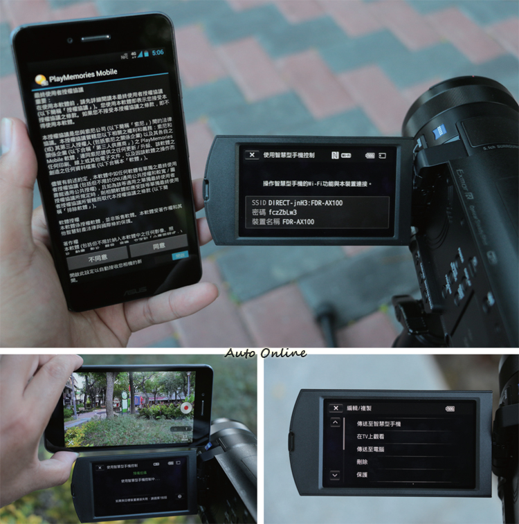 ![]() ▲除了基本的AVCHD格式外,FDR-AX100還增加了XAVC S HD與XAVC S 4K兩種格式。在錄影寫入格式上FDR-AX100具備多種選擇,除了原有的AVCHD格式外,為了因應4K高畫質的寫入,因此也增加SONY的獨特的XAVC S格式,除了有效降低4K的影像的檔案大小,同時可支援50Mbps的寫入,使影像紀錄的畫質更加穩定完整。 ![]() ▲透過雙重影像錄製功能,可以方便使用者利用較小的MP4檔案進行即時的分享。![]() ▲FDR-AX100採用3.5吋Xtra Fine LCD™ 觸控顯示幕,操作方式與SONY所有的觸控顯示幕相同。![]() ▲在手動對焦模式下,可透過ZOOM與FOCUS開關來切換調整環的功能。![]() ▲FDR-AX100具備內建三段式ND減光鏡,除了能運用Auto模式讓機身自行調整外,玩家亦可透過切換鈕手動選擇1/4、1/16、1/64三種減光效果。![]() ▲SONY使用多時的NFC,在FDR-AX100上面也出現了。![]() ▲透過手機PlayMemories Mobile APP可與攝影機連結,並可下載檔案與進行簡易的攝影機操控。