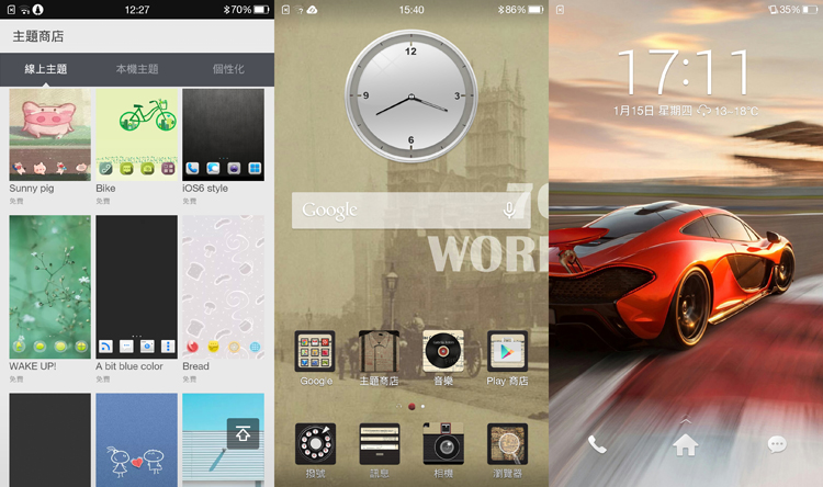 ![]() 嚴格來說,筆者本次介紹的N3則是繼去年六月起陸續上市的N1、N1mini之後,第三支擁有206°旋轉鏡頭的智慧型手機,不過在N3上面則是在旋轉鏡頭的機構中加入了電動馬達的設計。OPPO N3的外觀設計看似簡單,但其實是將塑料材質機殼與鋁合金手機框結合,機身下方採用鏤空的設計並且加入呼吸燈的配置,不僅能增加美觀,在接收到訊息時也能以燈光即時提醒使用者,而鏤空的設計也同時能為N3帶來防撞的效果,為手機掉落地面時提供第一道防護,減少螢幕直接撞擊的機會。 ![]() ▲N3機背採用消光塑料材質,手感相當不錯。![]() ▲鏡頭的部分刻意用上皮革材質,凸顯它與眾不同的之處。![]() ▲鏤空的設計除了內有呼吸燈的配置,同時也是N3的一道防撞機制。![]() ▲電源鍵設置在機身左側。![]() ▲獨家VOOC mini充電器,採用高電流低電壓的低溫閃充設計,不僅體積小充電速度更是一般充電器的4倍。![]() ▲OPPO N3搭載5.5吋LTPS觸控螢幕,具備1920X1080 Full HD解析度。![]() ▲後置觸控按鈕除了具備指紋辨識能力,同時也可以當作快門使用。![]() ▲內建指紋辨識功能,使用者最多可以儲存五組紀錄。![]() ▲OPPO N3 使用Color OS 2.0操控介面,並且內建安全中心。![]() ▲可以線上下載免費的主題,提供更多個性化的選擇。![]() ▲N3具備Micro SIM+Nano SIM的雙卡雙待的功能,Micro SIM卡插槽亦可直接轉作外接記憶體擴充槽使用。![]() ▲OPPO N3採用的是與德國光學科技品牌Schneider合作的相機鏡頭。![]() ▲電控的鏡頭可以透過螢幕的觸控調整角度。![]() ▲O-Click 2.0藍芽遙控器,透過NFC連結,除了可以尋找手機外,亦可當作快門使用。