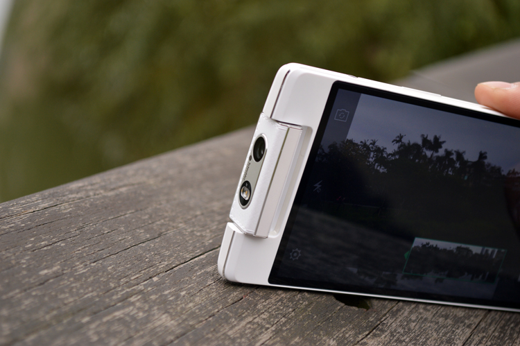 試用心得OPPO N3 無論是在外觀或者是在系統的操作上都有相當不錯的表現,其中以拍照的功能最能吸引到消費者,不過它仍有幾個小缺點,除了前面提到的影片支援格式與SIM卡插槽的問題外,電源鍵的位置也有些瑕疵,尤其是在使用自動全景拍攝時,無論是手持或者放置在固定的位置上,都很容易去按壓到電源的開關,這多少會影響到使用的便利性。 ![]() ▲使用自動全景模式時容易按到電源鍵,拍照時要特別注意。![]() ▲OPPO N3 空機價19,990元。