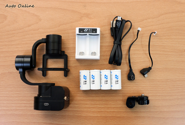 由於是三軸設計,Rider M與其它穩定器一樣使用三顆無刷馬達,不過據原廠表示,為了讓Rider M能夠抵抗更大的風阻,馬達的效能上會比其他款的穩定器高,筆者實際將穩定器裝在車外測試,即使車速超過70公里Rider M依然能夠保有穩定的功能,與Z1 EVOLUTION相比,它的抗風能力確實有明顯的提升。最後是電力供給的配置,Rider M使用兩顆18350的充電電池,並且同樣能提供電源給GoPro使用,這樣的組合雖然僅能提供最高5小時(供電給GoPro大約2小時)的使用時間,但是因為原廠有多附上一組電池,因此只要將兩組電池都充飽,即使在供電給GoPro的情況下,至少能拍攝4小時的影片,加上充電器是使用USB插座,如果有攜帶行動電源的習慣,就可以隨時為另一組電池充電,因此在電力的供給上不需要太過擔心。