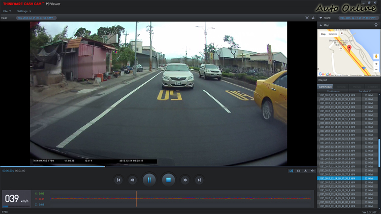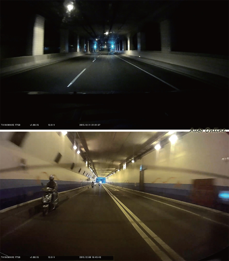![]() ▲Thinkware F750為雙鏡頭機型,主機與後鏡頭分開包裝。這套產品將前、後鏡頭分開獨立包裝,明顯是將後鏡頭作為選配,不過在台灣市場應該是直接以雙鏡頭組合販售。 ![]() ▲盒內附贈安裝用的零配件以及轉接卡、讀卡機。![]() ▲主機為黏貼式固定方式,但有快拆設計,可惜過緊拆卸不易。![]() ▲中文說明書圖文並茂,安裝和操作都不難。![]() ▲機身上有五個按鍵和四個燈號,包括實用的格式化功能。![]() ▲側面電源孔和後視訊號輸入孔,採12V電壓,因此一般行動電源無法驅動。![]() ▲透過Wifi連上手機,可以進行功能設定和下載影片。![]() ▲在電腦上安裝軟體後,可以比對地圖,也可隨時切換觀看後視畫面。![]() ▲直接從手機校正角度,把藍線對準路中央、綠線切齊車頭即可。![]() ▲白天畫面清晰,後方受到除霧線影響畫質,非戰之罪。![]() ▲對照鳳鼻(上)與復北(下)隧道內的前後畫面,看得出夜間對於照明的依賴性很高。