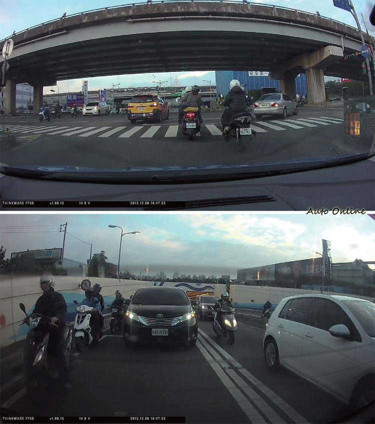 ![]() F750算是Thinkware產品中的旗艦機型,所以舉凡內建GPS接收、Wifi、3軸G值感應器、前後1080p雙鏡頭、雙儲存備份機制、自動對焦、智慧曝光/減噪、色彩對比強化等設計都納入其中。而作為一款高階機型,它更採用Ambarella A7 CPU處理器以及SONY Exmor CMOS 1/2.9"感光元件確保影片畫質,可以說是當今行車記錄器推頂之作。至於前文提到的附屬功能:LDWS和FCWS,由於市面上已經有越來越多新車納入這些主動安全配備,若能藉由行車記錄器一次搞定,絕對可以讓F750大大加分,所以我們將它列為本次測試的重點。