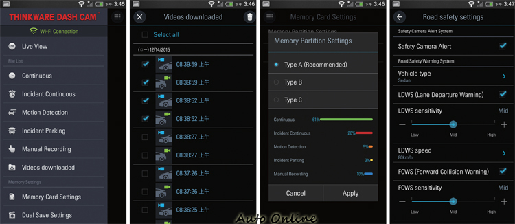 這又是一款來自韓國的高階行車記錄器,從它包辦2015 CES創新獎,與囊括德國紅點、iF、IDEA三大獎的大滿貫,就讓人充滿期待。Thinkware F750除了具備前後雙鏡頭和Wifi連接功能,由於有GPS接收機能,也能在PC上看見行經路徑與車速,不過讓我們感到興趣的的主要原因,卻是它的LDWS(車道偏離警示)與FCWS(前方撞擊警示)功能。