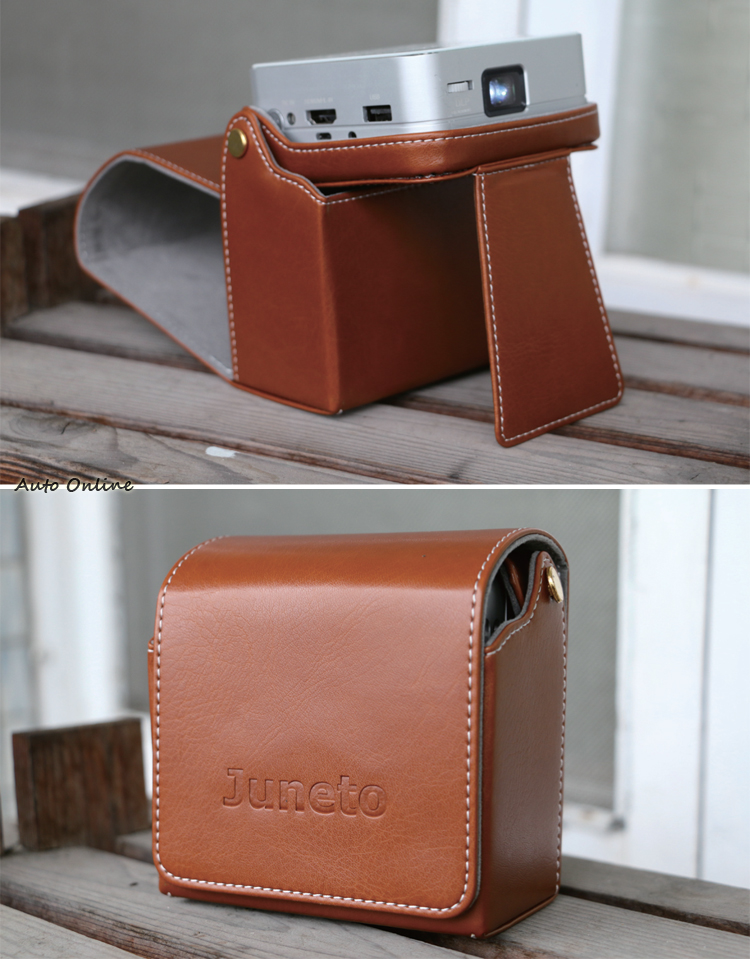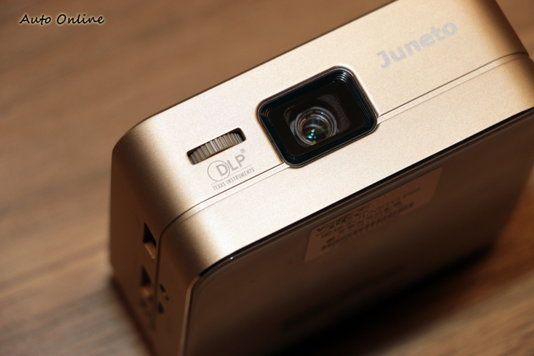 ![]() JUNETO P96微投影機外觀設計典雅又精緻,雖然85x85x34mm機身尺寸及210g的重量與市面上看到的微型投影機大同小異,但是透過鋁合金機身材質與防刮玻璃面板結合,擺脫傳統投影機給人較為死板的塑膠感。 ![]() ▲JUNETO P96微投影機採用鋁合金機身搭配防刮玻璃上下面板設計,質感表現優異,機身規格85x85x34mm重量210g。![]() ▲原廠專用皮套,兼具收納與腳架的功能,售價1200元。![]() ▲機身顏色有香檳金與閃亮銀兩種選擇。![]() ▲調焦齒輪位於鏡頭旁,投影距離的建議值為0.5m~3m。
