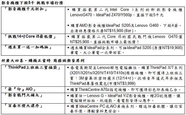 IdeaPad黃金週末買一送一加碼抽春電展週末(4/9~4/10)購買IdeaPad全系列機種,前100名成交者可參加加碼抽獎,最高可獲得11吋獨顯-IdeaPad S205 (原價NT$19,900)筆電一台。