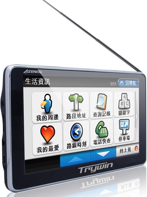 TRYWIN全系列除了具有日本設計的簡潔外觀,使用HD高畫質、FMT、AV-in、內建4GB,並首家推出「導航王K2 HD」導航軟體擁有全國測速照相、3D實景路口、豐富生活資訊、每月圖資更新、獨家吃喝玩樂優惠、門牌資料高達5,500,000筆…等功能,可說是「專業技術、專門導航」。