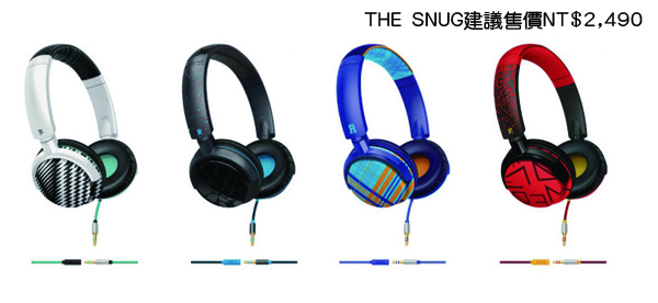 「型格舒適:THE SNUG」THE SNUG則以型格、舒適及便攜作賣點,共有SHO8800、SHO8801、SHO8802及SHO8803四款型號,分別印上黑白放射圖案、黑拋光岩石刻紋、紫黃青藍間條及火紅黑字,並在頭帶位置加入相配的塗鴉式花紋,外觀型格至極。搭配超柔軟可隔絕噪音皮質耳墊與超輕巧148g設計,讓舒適度更提升。該系列耳機與THE STRETCH系列一樣使用40mm喇叭驅動單體、CCAW捲繞式音圈及防糾結設計的堅韌棉質耳機線,耳筒機身還可作90度摺疊,方便攜帶及在戶外使用。(THE SNUG建議售價NT$2,490)