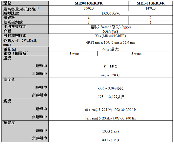 小型硬碟機領導廠商台灣東芝數位資訊股份有限公司,今日發表2.5吋系列企業級硬碟,MK3001GRRB/R具有 15,000 轉的高效轉速、6Gb/s SAS 界面和高達300GB的容量,締造業界2.5吋企業級硬碟容量最大、轉速最快的新標竿,能夠支援需要繁複運算的獨特企業需求。此外,MK3001GRRR則還提供磁碟加密技術,協助企業管理資料安全。