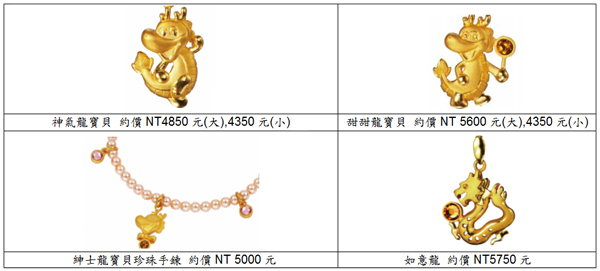 緊接著建國百年婚潮,2012年是「望子成龍、望女成鳳」大熱門的龍年,為搶攻此波百年寶寶、龍年寶寶送禮市場,真愛密碼推出龍寶貝系列生肖禮,使用富貴的金飾打造各色圓潤的龍寶貝,「神氣龍寶貝」、「甜甜龍寶貝」等特色金墜以活潑俏皮的肢體動作與造型、搭配施華洛世奇水晶點綴,讓真愛密碼龍寶貝們展現不同的個性與性格,金飾溫潤的線條與質感勾勒出無限祝福,透過保值貴氣的金飾為龍寶寶們討喜氣。