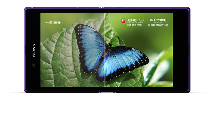 ![]() 原色顯示 極真感動 Xperia Z Ultra擁有全球最大6.4吋Full HD超高畫質顯示螢幕,搭配Sony 傲視群雄的TRILUMINOS™ Display for mobile原色顯示技術,可以呈現極為寬廣的色域,增強畫面深度,讓您體驗最真實、鮮明的影像視覺。而X-Reality™ for Mobile極真影像技術則會分析每個影像,針對畫素、材質、外緣、色彩、對比及雜訊進行自動優化,提供使用者最清晰銳利、細膩逼真、沒有雜訊的流暢影像。