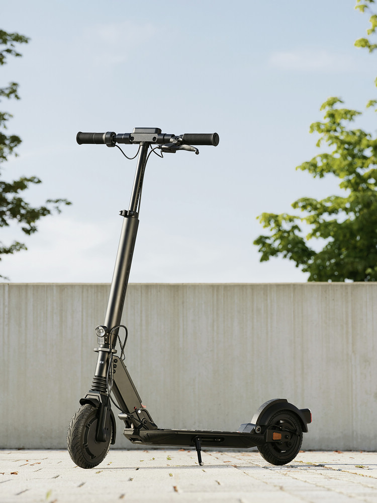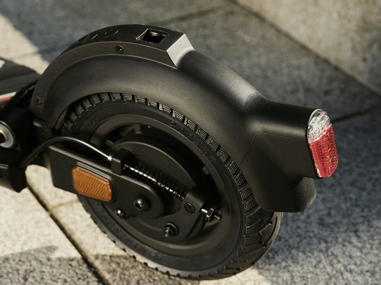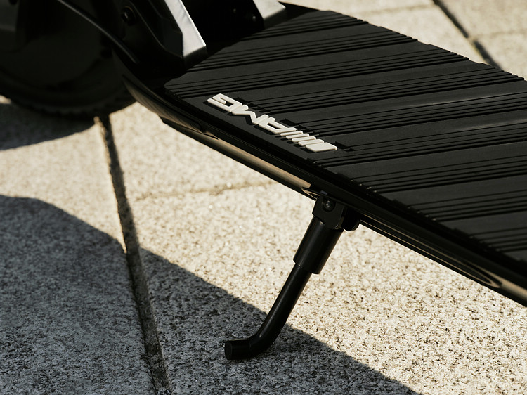 其煞車系統除了透過握把上的電動馬達減速器以外,還可利用後鼓式煞車和擋泥板上的腳踏摩擦為車輛減速。手把向前轉動還可啟用動能回收系統為電池充電。也由於這款滑板車具有符合法規要求的各式安全裝置,因此可於歐洲地區開放道路使用,對於有短程移動需求的都會通勤族來說,未嘗不是一個輕便而環保的新選擇。
