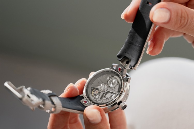 每條錶帶都由徠卡手工工坊精心製作,融合現代科技與傳統工藝。錶帶甄選兩款獨特材質打造:第一款為富有彈性、經久耐用的高科技織物,具有高強度和長使用壽命,其米色布料特有的立體紋路為手腕間增添雅緻格調;第二款為優質橡膠,具有出色的耐用性和舒適性,其明亮橙色色調和獨特的搭配反向“Clou de Paris(巴黎釘紋)”圖案,為想彰顯大膽風格的人理想的選擇。