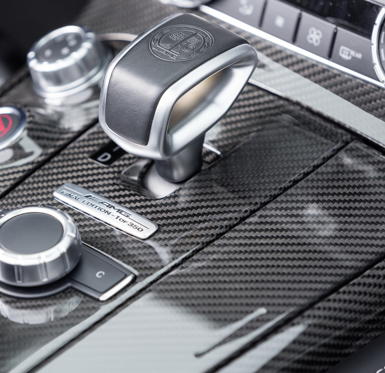 內裝上也以更高水準的鋪陳來向Final Edition表達敬意,在中控台座椅與車門飾板等處都以鑽石圖案的頂級designo真皮材質來鋪陳,並以黑色搭配銀色縫線來營造對比。中控台上排檔桿後方則鑲有表示生產流水序號的銘牌凸顯車輛的稀有價值。