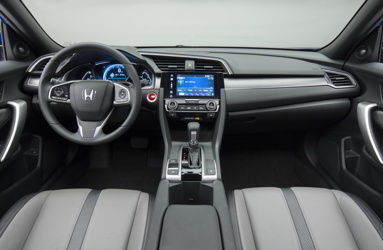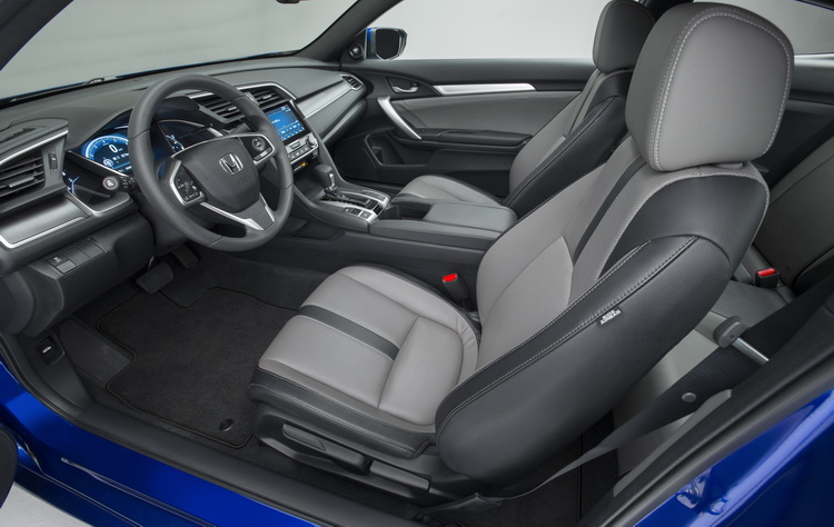 與上代Civic Coupe相比,新Civic Coupe的車室空間也有所增加,特別是在腳部的活動空間部分比上代增加了約127mm。內裝所使用的鋪陳材質也有更好的質感,提升車艙的豪華感,車內靜肅性也更為進步。