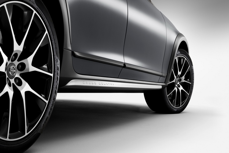 新V90 Cross Country與歷代的Cross Country車型一樣,與旅行車V90的主要差別在於車身距地高度增加(加高了64mm),讓車子的進坡角、跨越角、離坡角等越野行駛上很重視的角度增加,擁有較好的越野地形行駛能力。此外V90 Cross Country也擁有外擴輪拱與車底下護板等專用配備,進一步展現越野風格。