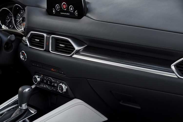 在這次大改款中,新CX-5導入了SKYACTIV-VEHICLE DYNAMICS車輛控制技術系列中的G-Vectoring Control系統。設計上注入了日本的美學意識,以成熟、洗鍊與質感作為內外裝設計思考的主軸。與現行車款相比,新CX-5前後輪距都增加了10mm,A柱則向後退了35mm,營造出視覺上的紮實性與安定感。至於扁平化、低矮化的頭燈與頗富立體感的六角盾形水箱罩都給人更為強悍的印象。車身尺碼為車長:4545mm、車寬:1840mm、車高:1690mm,軸距:2700mm,比現行車款車長微增5mm,車高降低15mm,車寬則沒有改變。