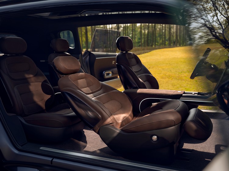 內裝則以四座佈局帶來寬闊、通透及明亮的乘坐體驗;其中中控上方配備13吋雙OLED顯示幕,系統內建AMD V2000運作晶片,同時還有所謂的零重力座椅,座墊內並配備同級首見的安全氣囊。