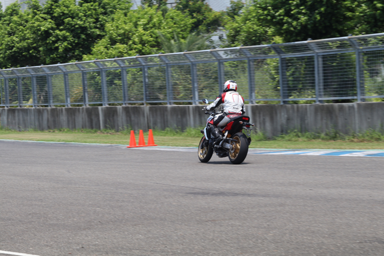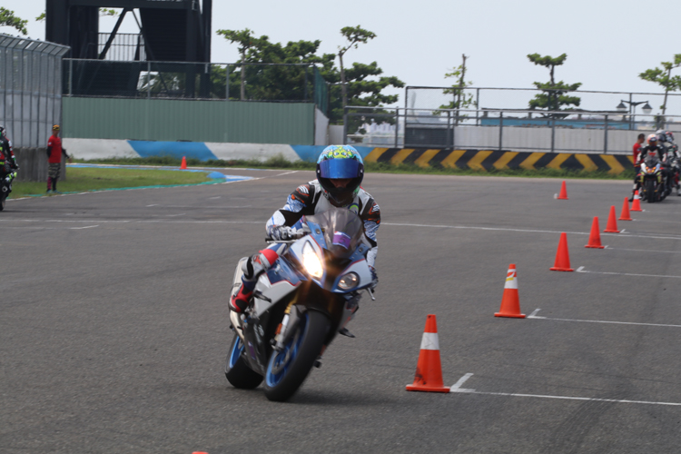 【課程五:尋找入彎點、Apex點與出彎點】 小編在賽道上騎乘時最大的問題就是無法精準地找到這三個點,常常導致車輛外拋,甚至衝出緩衝區,但是透過場上擺放的角錐,讓學員了解什麼是好的進彎點、Apex點與出彎點,學會這個技巧後,要找到正確的入彎點、Apex點與出彎點就容易多了。 小編在這個關卡被教練點出入彎時速度過快,導致無法貼近Apex點,入彎時將車速放慢,貼近Apex後可以更早開油。