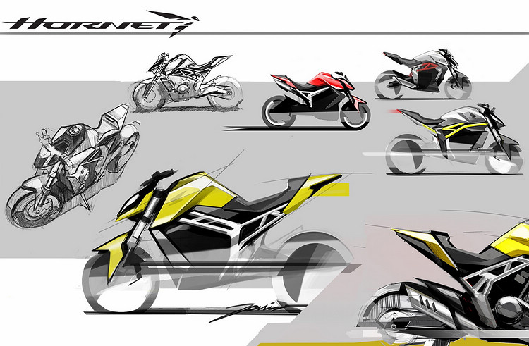 設計圖顯示Hornet車身具備纖細比例、削尖車尾和銳利線條等特色,以突顯現代消費潮流所期待的街車敏捷、躍動感和輕量特質。緊湊的外觀比例以侵略性風格,勾勒出Hornet訴求的運動街車訴求。