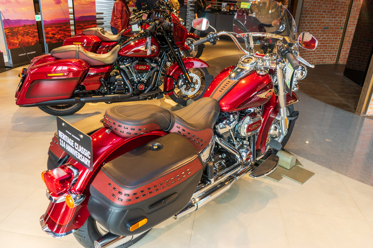 Harley-Davidson以6種車款打造120週年紀念款,包含:CVO Road Glide Limited、Ultra Limited、Street Glide Special、Road Glide Special、Fat Boy 114、以及Heritage Classic。在每個120週年紀念車款上,都能完整體現Harley-Davidson精湛的工藝和設計,外觀烤漆以傳家紀念紅(Heirloom Red)作為主體顏色,同時在面板上勾勒鮮豔的紅色細紋,並混搭較深的暗夜緋紅(Midnight Crimson)色調。