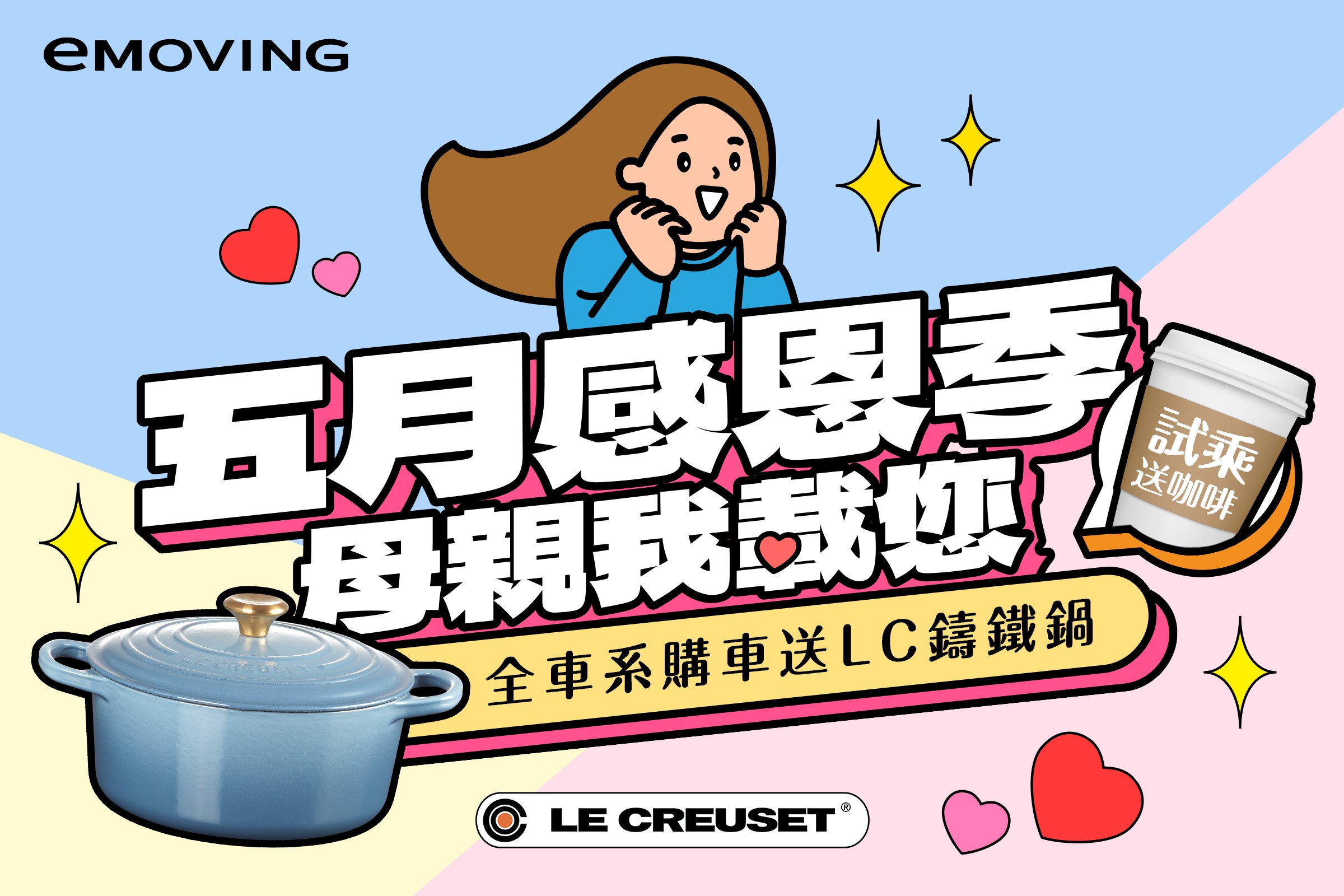 eMOVING為慶祝母親節,推出EZ1全新車色「神秘霧藍」,結合EZ1的多項車款特色,把不簡單的生活變簡單,輕鬆化煩為簡。上市首月更結合重磅優惠,即日起購買全車系車款就送法國品牌LE CREUSET鑄鐵鍋,為媽媽的生活添加豐富色彩。如設籍桃園之車主還能視自身條件彈性搭配桃園市政府力推的「桃汰郎」、「青年輕E購」、「婦幼E騎go」(註)三大電動機車補助專案,其中,針對育有6歲以下孩童的婦女,再另外給予原車價95折優惠,讓媽媽購車更優惠。