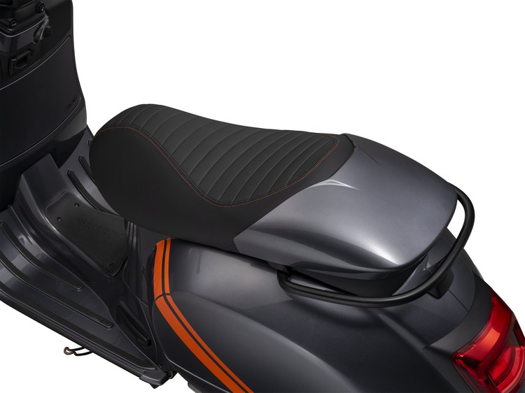 新GTV 300也加入了全新的動感設計元素,例如:寬敞舒適的賽車風格座墊,配以橘色的椅墊縫線為特徵,並可選配加裝可拆卸的座墊後飾蓋;車身前側的領結飾蓋以獨特的三道直線氣孔設計,輔以橘色點綴於V型喇叭飾蓋;此外,全車細節搭配帥勁十足的消光黑化風格,呈現在車前低頭燈與尾燈框、儀表板支架、圓形後視鏡、車身飾條、後座扶手、腳踏板及排氣管防燙蓋。