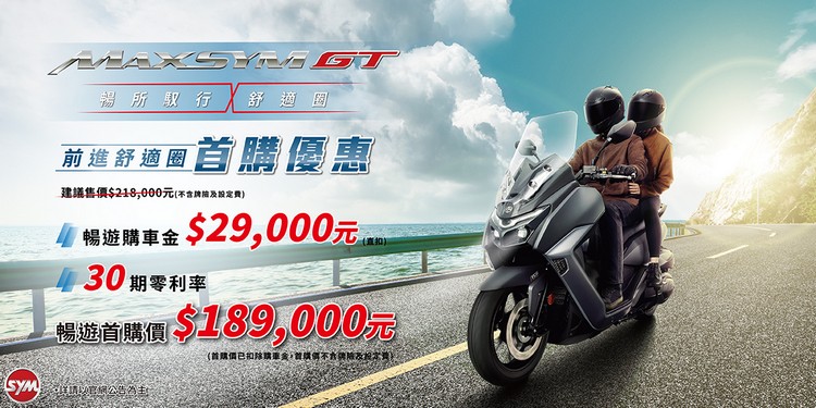 連續4年蟬聯年度大型重型速可達銷售冠軍的SYM,自2021年發表MAXSYM 400巡弋勁旅,以騎乘的舒適便利性及大置物空間等特點,充分滿足車友在騎旅遠行的各項需求,並在台灣市場上超過2,500台的銷售佳績。2024年SYM再推出了MAXSYM 400全新改款「MAXSYM GT」,以更符合國人身形量身設計,滿足長途騎旅所需的暢快移動、舒適駕馭、空間擴增,冠以「Grand Tour」 GT之名,期望讓消費者享受騎旅遠行一路舒暢騎乘,所到之處都是舒適圈的最佳體驗。
