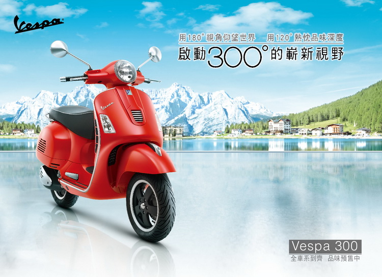 正值政府開放黃牌摩托車路權屆滿一年之際,基於上手容易、具高度便利性及機動性,俗稱大羊的黃牌大型速克達一直是車友們討論的熱門話題,在眾多廠牌中,由Vespa台灣總代理太古運通所引進的Vespa 300頂級旗艦車款更是車友們眼中的夢幻逸品。 為滿足眾多車友的不同需求,在總代理積極向原廠爭取之下,Vespa 300頂級旗艦車款由先前GTS 300ie Super、GTS 300ie Super Sport及GTV 300ie三個車型,加入了GTS 300ie都會入門車型及GTS 300ie Touring經典旅行車型。五款頂級旗艦車型一齊到位,完整滿足車友的深度品味。