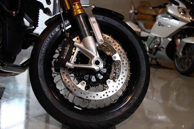 ![]() 在懷舊部分R nineT使用鋼絲框與經典圓燈設計。很多車迷關心究竟引進台灣的R nineT是單座還是雙座蓋設計。雖然目前汎德所引進的車款為雙座設定,但由於R nineT車架可以調整,因此後座墊與後腳踏可以整段自行移除,屆時要單座還是雙座就看車主喜歡了。