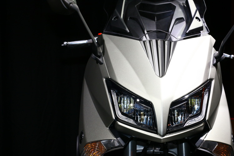 動力部分維持過去直列雙缸530c.c引擎,最大馬力46.5hp/6700 rpm,扭力峰值則為52.3Nm/5,250rpm。外觀部分在車頭整流罩部分原廠做出更為細緻的處理,改款亮點之一便是頭燈組換上了LED頭燈。採近燈與遠燈各亮兩顆的模式呈現。資深一點的車迷可能就知道這樣的改變是TMAX首度使用LED光源,並且與過去許多重機一樣頭燈只亮一邊的設計有所不同。