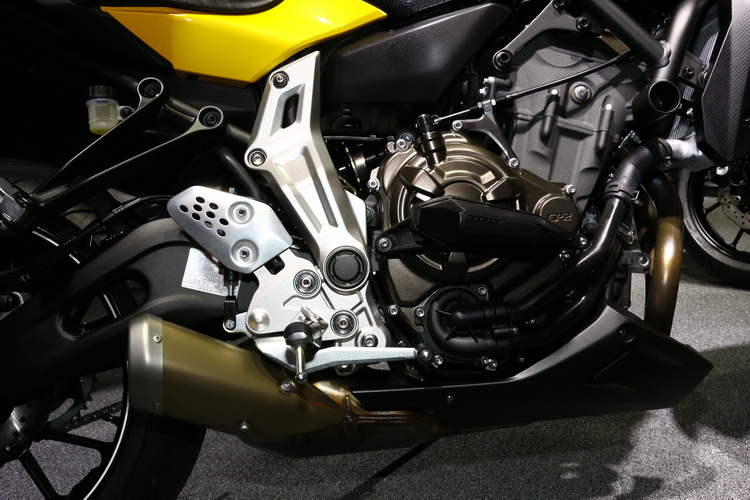 由於考量到MT-07相當有機會成為車主每天通勤的車款,因此車採用新開發的輕量化車架,全車僅重182 Kg!為了穩定騎乘姿勢油箱設計採流線型並搭配腿部空間的凹槽和乘坐位置的設計,不僅可讓雙腿擺放和移動更有空間,還能隨著路況自由調整姿勢。在制動方面前輪除使用282mm雙浮動碟外,更搭配對向四活塞卡鉗及ABS,後輪則採180的後寬胎+245mm單碟煞車碟盤。MT-07的官方報價為36萬元(不含牌險)