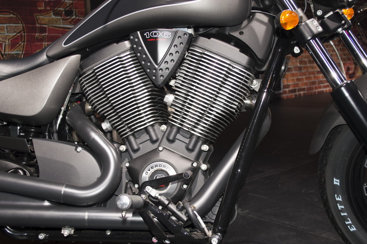 Victory Gunner具備強力輸出,獨特魚鉤造型油箱以頂級絨布感鈦金屬與黑色雙色塗裝展現都會時尚態度,搭載106-CI Victory重機品牌的Freedom系列V型雙缸,搭配14.66公斤米扭力的輸出,六速變速箱提供換檔時的順暢感,螺旋切面的齒輪確保每一檔進退都可以到位並確實,騎乘在寬闊的公路上可以享受最佳的馳騁快感,穿梭在都會叢林裡更是遊刃有餘。