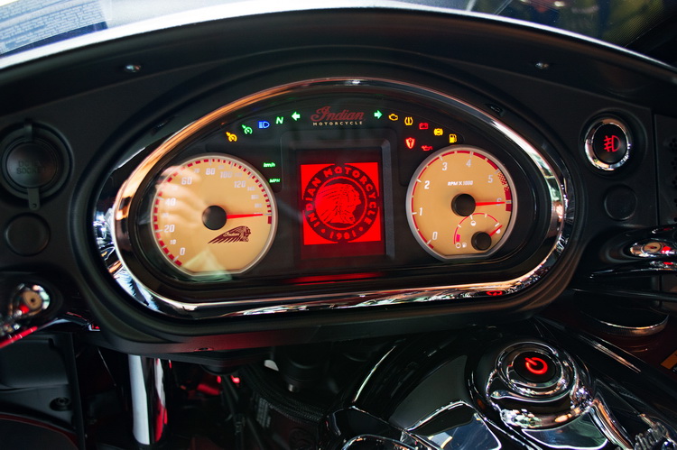 有「公路之皇」美名之稱的Indian Roadmaster,又簡稱「路皇」是Indian旗下最頂級豪華旅行車,於40年代時,即成為當代頂級豪華重機中非常重要的指標,2015年更是來勢洶洶,氣勢磅礡!2015年式Indian Roadmaster具有全新標準豪華配備,無論從頭燈、霧燈、尾燈,方向燈及後背箱燈..等,全車皆採用LED燈。經典的前擋泥板塗霧酋長頭造型車燈,免鑰匙啟動功能,讓您隨即啟動一觸即發。