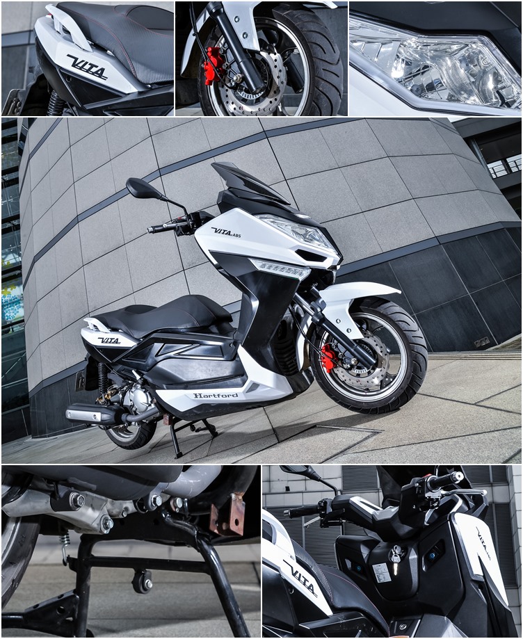 VITA300: (售價98,000 不含牌險)![]() 挑戰國產黃牌級距車輛最高性價比,高架道路路權搭配上276c.c.單缸四行程水冷引擎,擁有17.6ps最大馬力與2.2kg-m最大扭力,並搭載雙迴路ABS煞車系統、LED定位燈與H4大燈燈具、前後13吋的輪胎配置、大容量置物空間以及更符合亞洲人騎乘的座墊高度。