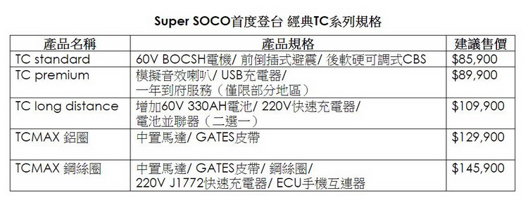 國內幾家二輪車品牌在電動機車的市場的攻佔上競爭激烈,放眼望去在車型上都是以速克達為主。而今日(3/19)高雄瑞溍科技所代理的Super SOCO品牌,發表了TC/TC Max電動機車,在造型設計上是走具有Cafe Racer精神的英倫復古街車風,在性能上也更具有「重型打檔車」的水準,鎖定對於電動機車有高於一般日常通勤使用需求的二輪族群。